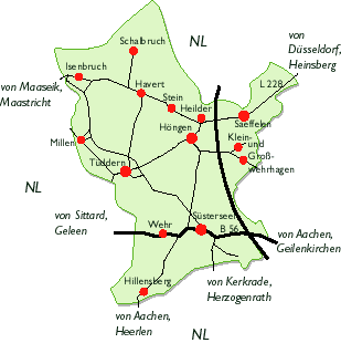 Selfkant Ort in einer leichten Senke am Rodebach. Im Norden grenzt der Ort