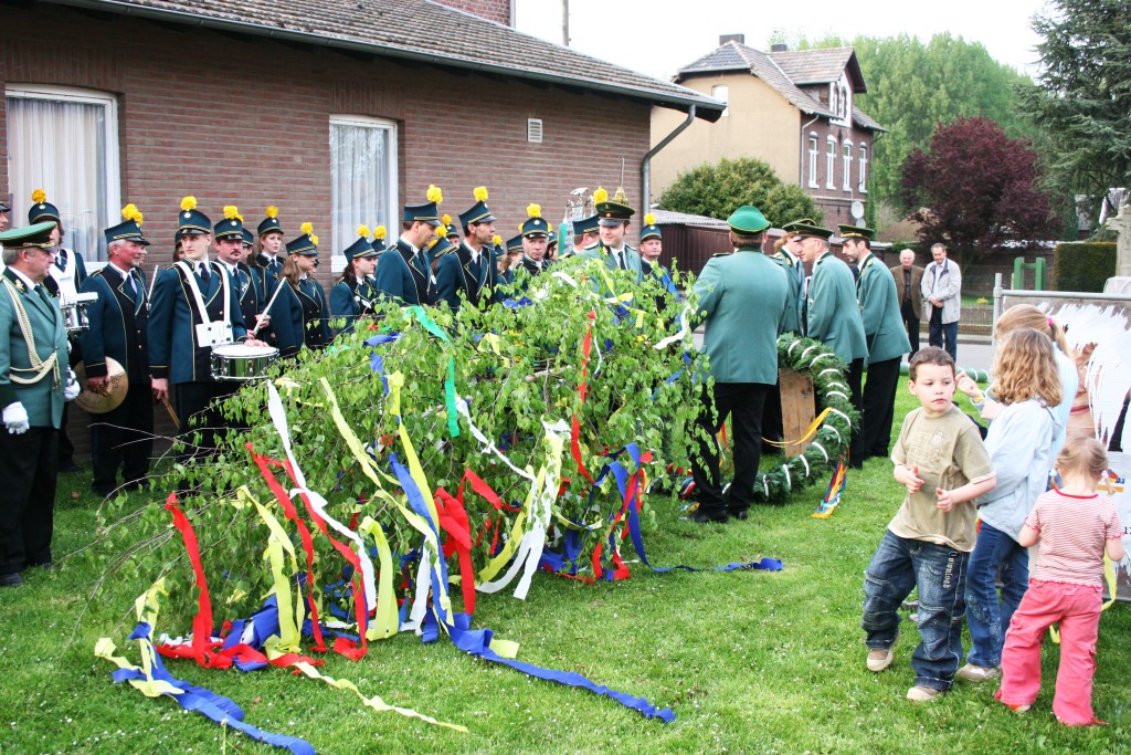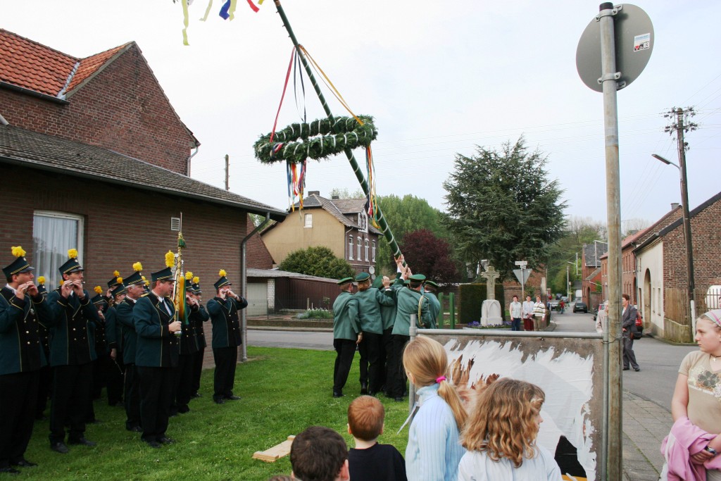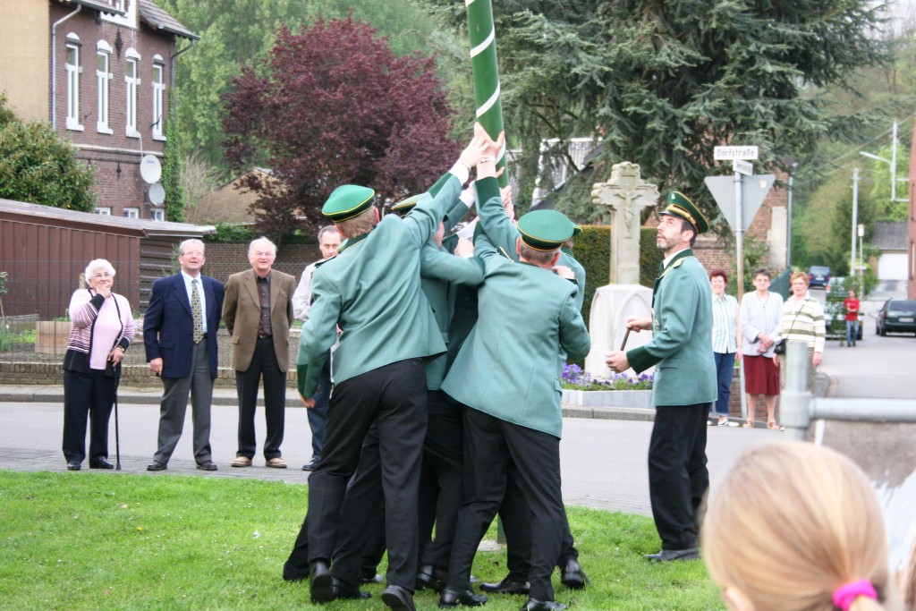 Maibaum Errichtung 2005Wehrer Ortsvereine treffen sich am Dorfzentrum.30. April 2005 - Nach alter Tradition trafen sich heute wieder die Wehrer Ortsvereine um gemeinsam am Dorfzentrum den Maibau zu errichten. Nach der Vorabendmesse traten Spielmannszug, Schützenbruderschaft und Gesangverein auf dem Kirchplatz an und zogen mit Maibaum und Kranz gemeinsam zum Dorfzentrum. Nach musikalischen Beiträgen des Gesangverein Concordia und des Spielmannzugs Wehr, wurde der Baum von kräftigen Mitgliedern der St. Severinusschützenbruderschaft hochgestemmt. Alle Beteiligten verbrachten dann noch ein paar gemütliche Stunden bei lauem Sommerwetter auf der Wiese vor dem Dorfzentrum.