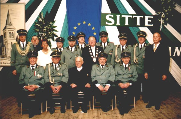 Silbernes VerdienstkreuzDas Silberne Verdienstkreuz kann an Schützenschwestern und Schützenbrüder verliehen werden, die sich innerhalb der Bruderschaft oder der Organisation des Bundes Verdienste erworben haben. Die Verleihung erfolgt auf Antrag des jeweiligen Vorstandes. Der Antrag ist vom jeweiligen Vorsitzenden/Brudermeister und Präses zu unterschreiben. Auszeichnung und Urkunde werden durch den Vorsitzenden/Brudermeister überreicht. Mit dem Silbernen Verdienstkreuz wurden folgende Schützenbrüder ausgezeichnet: Wiili Frantzen Ebenfalls erhielten vier Mitglieder des Spielmannszuges diese Auszeichnung: Hermann Josef Offermanns Hoher BruderschaftsordenDer Hohe Bruderschaftsorden kann an Schützenschwestern und Schützenbrüder verliehen werden, die sich um die Bruderschaft oder den Bund und seine Organisation besonders verdient gemacht haben. Die Verleihung erfolgt auf Antrag des jeweiligen Vorstandes. Der Antrag ist vom jeweiligen Vorsitzenden/Brudermeister und Präses sowie durch den Bezirksbundesmeister und den Bezirkspräses zu befürworten und zu unterschreiben. Auszeichnung und Urkunde werden durch den Bezirksbundesmeister oder den Bezirkspräses überreicht. Im Falle einer Verhinderung ist von diesen ein Vertreter zu benennen, der dem Bezirksvorstand angehören soll. 12 Schützenbrüder wurden mit diesem Orden ausgezeichnet und erhielten aus der Hand des Dekanatsbundesmeisters eine Urkunde: