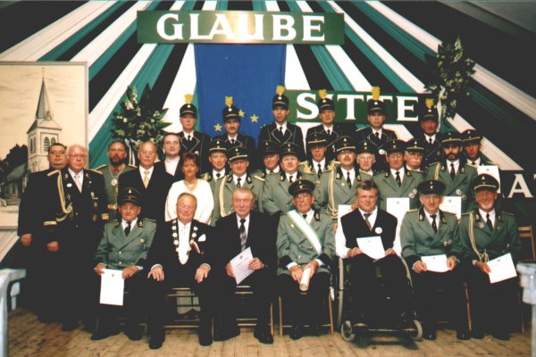 Unser Bild zeigt die geehrten Schützenbrüder mit Präsident Georg Wagemans ( links außen, Präses Kaplan van Deursen und Königen Ellen Stelten. Rechts Schirmherr Herbert Corsten. Hier die Liste der Schützenbrüder: Josef Robertz Besondere AuszeichnungenDie weiteren Auszeichnungen unterliegen auch entspr. Verleihungsbestimmungen, die der Bund der Historischen Deutschen Schützenbruderschaften festlegt. Hier finden Sie die Bestimmungen: Hier das Bild der Jubilare nach der Ehrung.