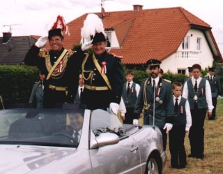 AktuellGeneralstabsmäßig verliefen Festaufzug und Vorbeimarsch in Wehr ab.26. Mai 2002 - Exakt im Zeitplan verliefen heute die festlichen Höhepunkte des Dekanatsschützenfestes in Wehr. Pünktlich um 14:30 marschierten der Spielmannszug Wehr, der Musikverein Süsterseel und die Schützenbruderschaft Wehr mit Schülerprinz, Königspaar und Kaiser am Dorfzentrum vor, um die Kommandanten, die Ehrendamen und die Ehrengäste zum großen Festumzug abzuholen.