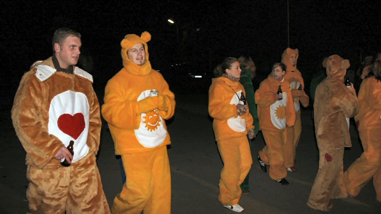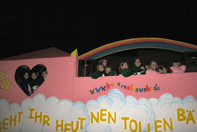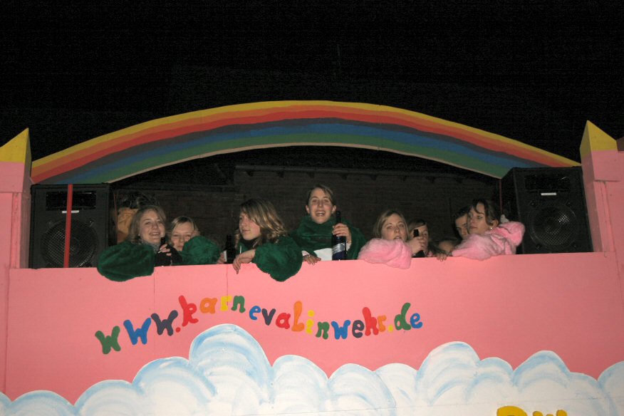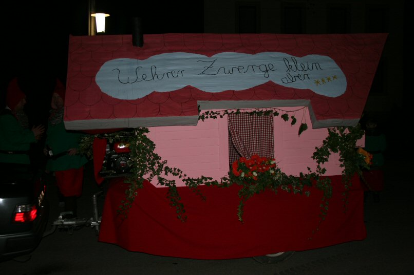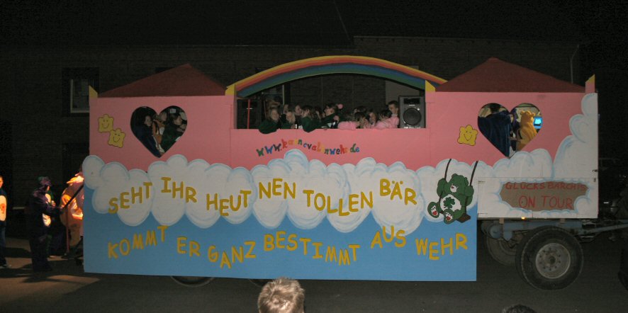 Karneval in Wehr 2005Am Freitag Abend ( 04. Februar 2005 ) präsentierten sich die Wehrer Jecken im eigenen Dorf mit einem kleinen Umzug und stellten damit ihre diesjährigen Gruppen der Dorfbevölkerung vor. Viele interessierte Zuschauer, wie bei den großen Umzügen im Selfkantkreis, gab es nicht. Für diejenigen, die den Umzug verpasst haben, hier ein paar Schnappschüsse von den Glücksbären und den Zwergen. Wer die Gruppen noch in einem großen Umzug bewundern möchte, kann sie am Rosen-Montag in Tüddern bewundern. Weitere Informationen findet Ihr noch unter www.karnevalinwehr.de